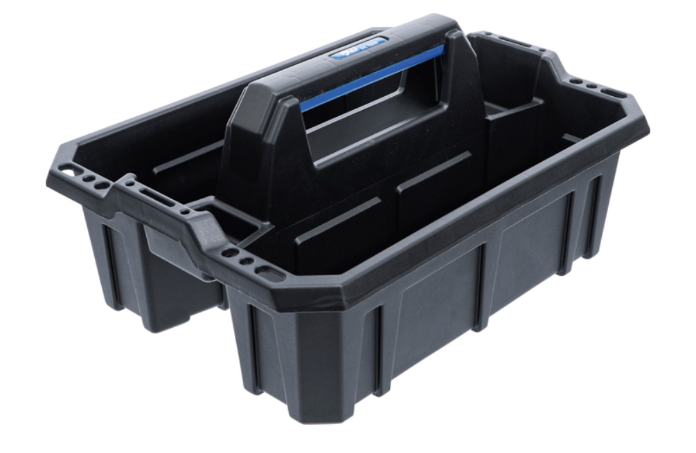 Avoin kantolaatikko, jossa on kaksi isoa yksittäislokeroa työkalujen ja pienosien kuljetukseen. Sopii myös nesteille ja purkeille. Erillinen rei'itys reunassa ruuvimeisselien kiinnitystä varten.