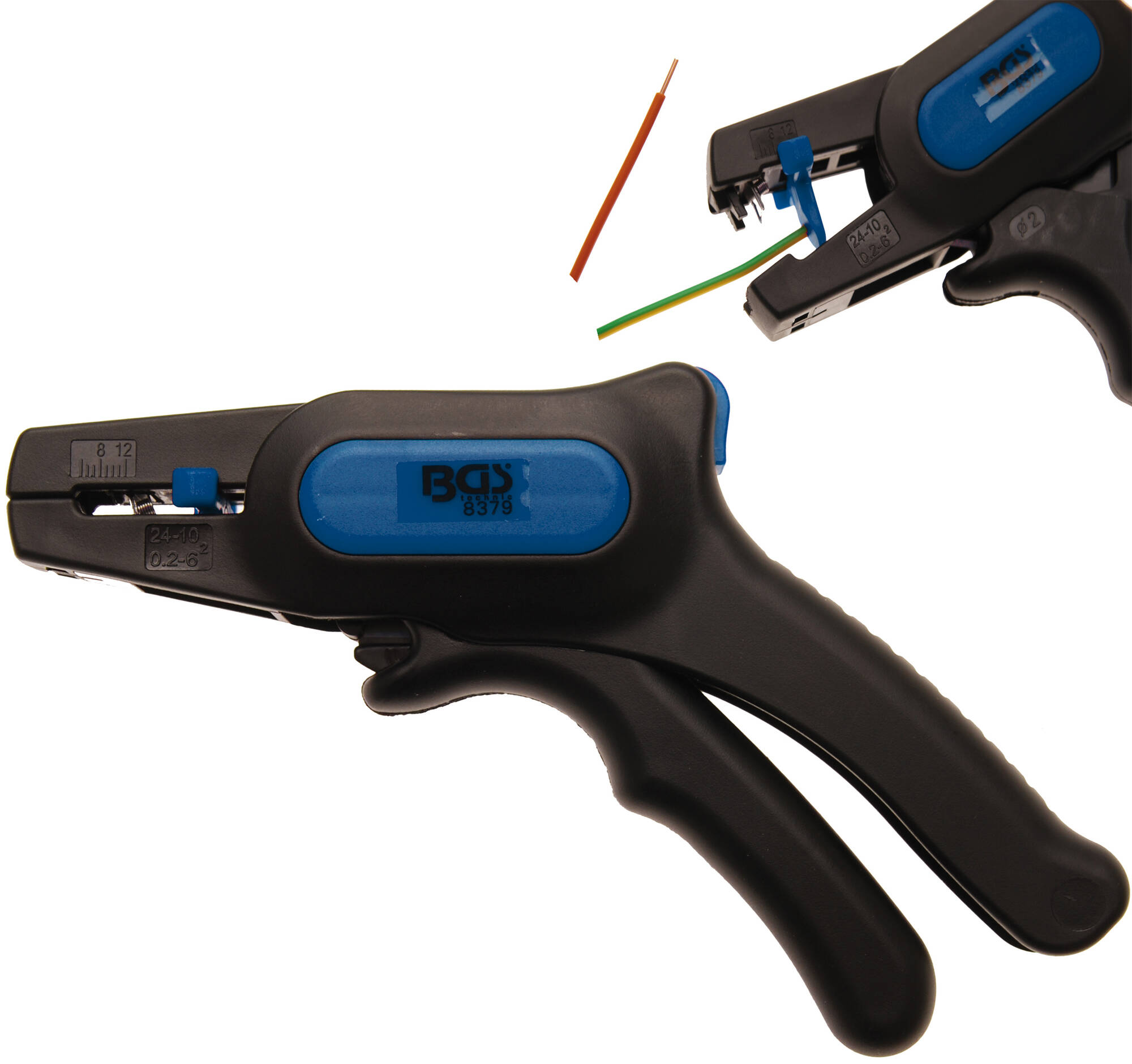 Itsesäätyvä kuorintapihti kaapelille Ø 0,2 – 6 mm2. Kuorintapituus säädettävissä pysäyttimellä 8-12 mm.