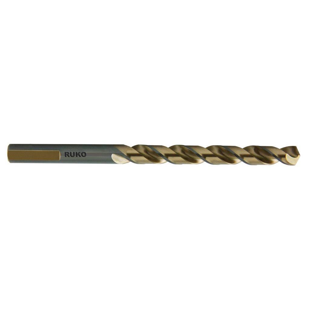 RUKO pikateräspora DIN338 HSS Co5-Koboltti, 3-viisteinen kanta. Kärkikulma: 135-astetta. Lastu-uran nousu: 40-astetta. Toleranssi: h8. Soveltuvuus: seostetut ja seostattomat teräkset 1100N/mm2 asti. Soveltuu erityisesti käytettäväksi akkukoneissa, kannan kolme viistettä takaavat erinomaisen tehon siirtymisen, eikä terä pääse pyörimään istukassa.