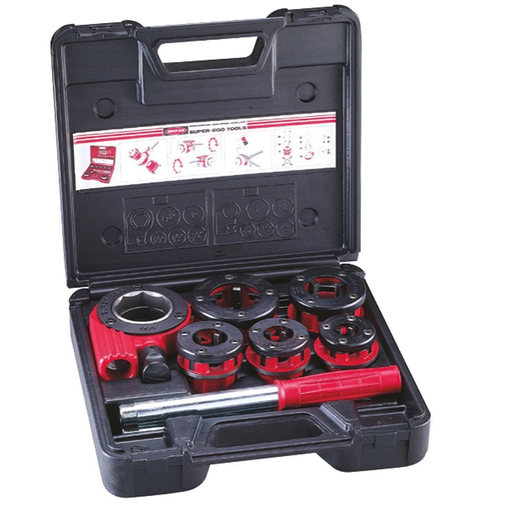 SUPER-EGO Kierresorkkasarja BSPT. Sisältää 1 kpl räikkävarsi ja 4 kpl kierrepäät 3/8 – 1 1/4.