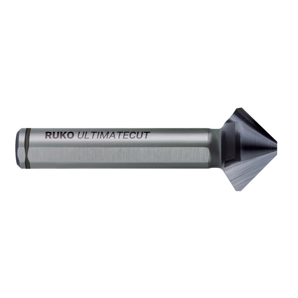 RUKO kärkiupotin Ultimatecut DIN335 HSS Co5 RUnaTEC. C90°. Soveltuvuus: kovateräkset 1300 N/mm2 asti, ruostumaton teräs, alumiini, messinki ja muovit. Pintavärit: tumma/RUnaTEC. RUKO nanotechnology: nopeampi, voimakkaampi ja entistä tarkempi. UltimaCutin leikkuugeometria tekee työskentelystä entistä tehokkaampaa. ULTIMATECUT on uusin leikkuugeometrian innovaatio. Ultimatecut vähentää valtavasti pyörimiseen tarvittavaa voimaa, joka vaikuttaa olennaisesti työkaluun ja sen käyttöikää. Se on lisäksi hiljainen käyttää ja se ehkäisee hitsaantumista. Yli 60% pidempi käyttöikä, yli 30% nopeampi ja optimaalinen viimeistely. UltimateCutilla saat parhaat tulokset lähes kaikilla materiaaleilla.
