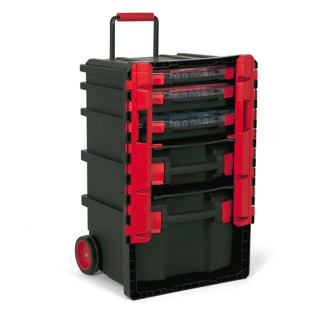 TAYG Vedettävä työkaluvaunu, Nro 59. 5-osainen vedettävä työkalupakki kahdella pyörällä ja teleskooppivetokahvalla, iskun ja pakkasen kestävää muovia. Lukittavissa riippulukolla.... Lue lisää