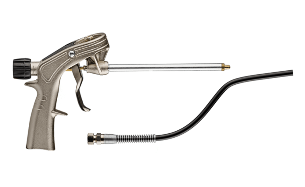 Monitoiminen, kestävä, metallirunkoinen vaahtopistooli aktiiviseen käyttöön. Mukana muotoiltava 300 mm jatkoletku muistitoiminnolla.