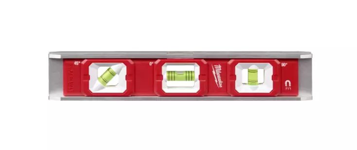 Milwaukee Base Torpedovesivaaka. Korkean kontrastin libellit. Kolme Hi-Vis libelliä parantavat mittauksen luettavuutta ja tarkkuutta. Vahvat maametallimagneetit kiinnittyvät voimakkaasti. Optimoitu V-ura lisää vakautta kirjometalliputkissa. Kestävä alumiinirunko. Kompakti, kapeneva muotoilu. Tarkkuus 0,029 astetta (0.0005"/", 0,5 mm/m) vakioasennossa.