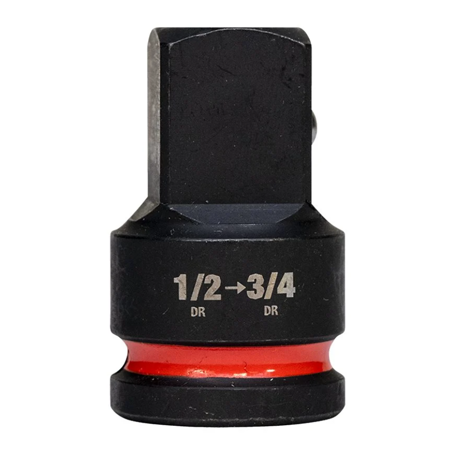 Milwaukee voimahylsy adapteri 1/2" naaras ja 3/4" uros. Valkoiset, musteella täytetyt kokomerkinnät ja lasermerkatut osanumerot helpottavat tunnistamista eivätkä kulu pois. Kuulalaakerimuotoilu takaa erinomaisen iskunkestävyyden. Kaksoisreiän muotoilu ja ura parantavat hylsyjen käyttöturvallisuutta.