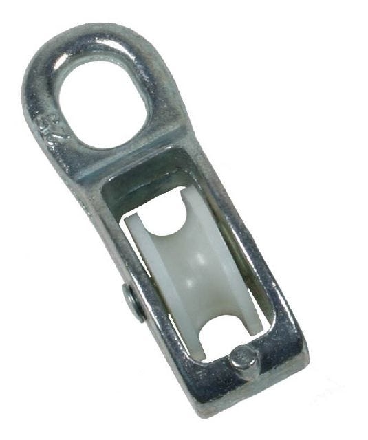 Pylpyrä/väkipyörä, kehrä nailonia, soveltuu käytettäväksi keinokuituköysillä
