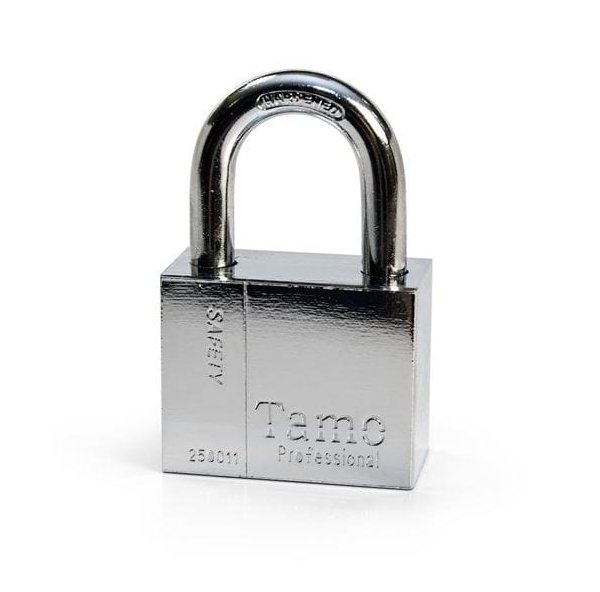 Riippulukko kromi päälysteinen karkaistu sanka.