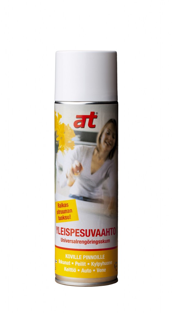AT yleispesuvaahto. Kovien pintojen puhdistukseen esim. rasvasta, liasta, noesta jne. Ei jätä kalvoa. Raikkaan sitruunan tuoksuinen.