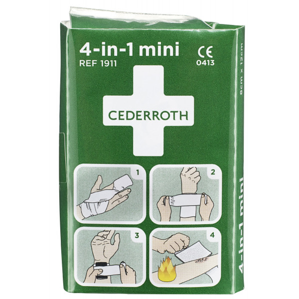 Cederrothin monikäyttöinen ja steriili ensiapuside korvaa perinteiset irtorullat ja haavataitokset. Nelitoiminen yleisside monipuoliseen ensiapuun.