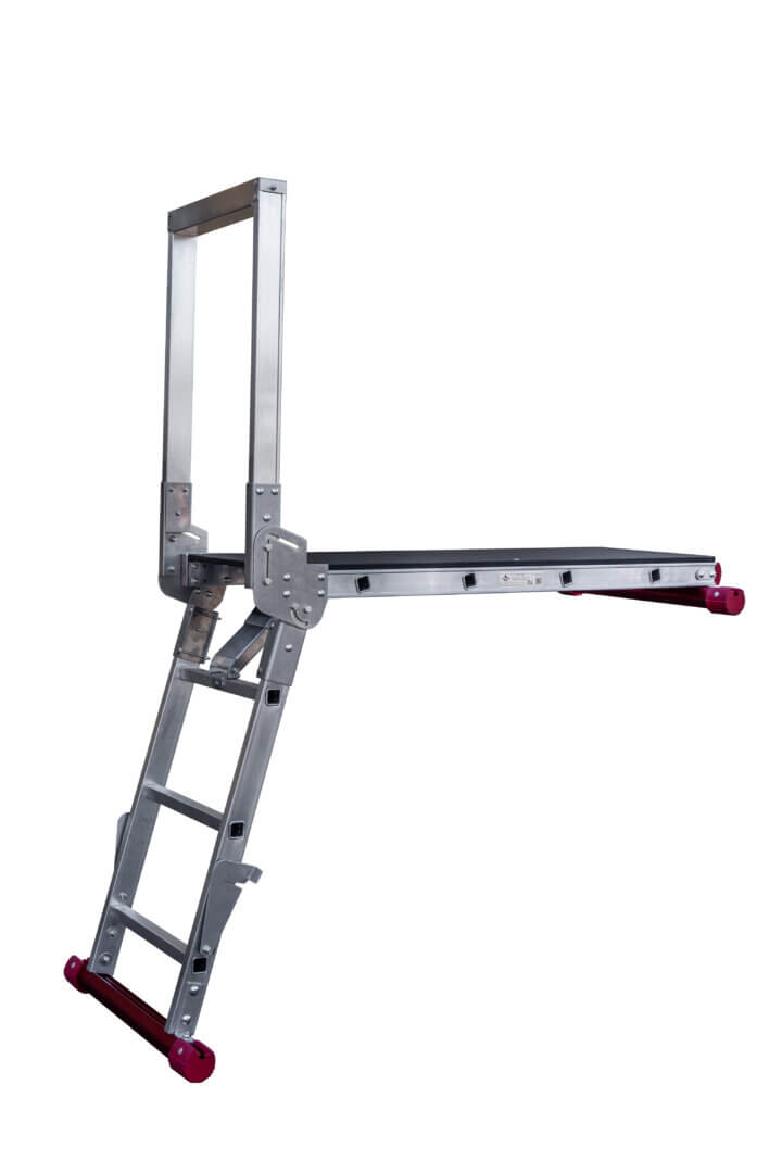 Porrastaso ammattikäyttöön. Kokoon taittuva, turvallinen nivellukitus. Liukuesteet ovat TPE-muovia, joilla on erinomaiset pito-ominaisuudet. Tason koko 125 cm x 45 cm. Kantavuus 150 kg. Paino vain 15 kg. Täyttää VNa-205/2009 -vaatimukset ja rakennusyritysten tikasohjeet.